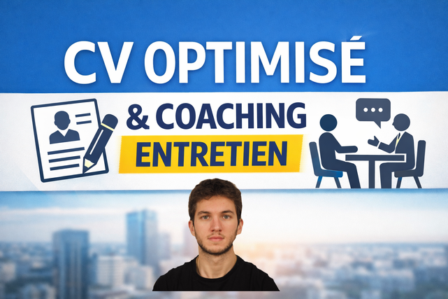 Diplômé d’un Master 2 en grande école de commerce (Burgundy School Of Business) avec plusieurs expériences en management et encadrement, j’accompagne les étudiants et jeunes actifs dans la rédaction et l’optimisation de leur CV ainsi que la préparation de leurs entretiens. Mon approche est concrète et personnalisée : je vous aide à valoriser vos expériences, structurer vos candidatures et gagner en confiance face aux recruteurs.