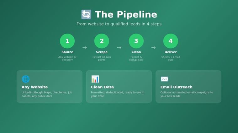 Offre Basique (93,80 $US) : 1 site, 500 leads, export Sheets — 7j