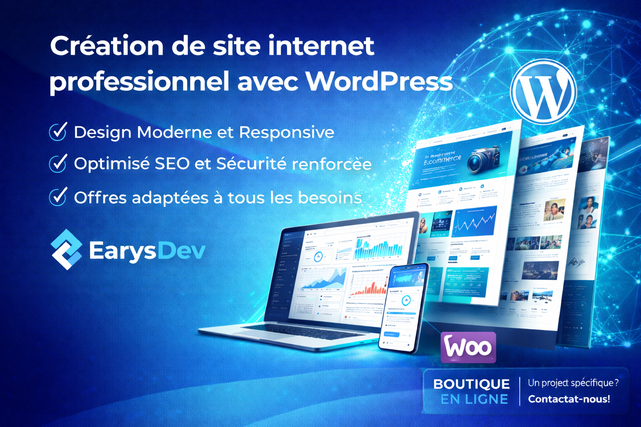 Je vous propose la création complète de votre site web avec WordPress, la solution la plus utilisée au monde pour créer des sites performants, évolutifs et faciles à gérer.
