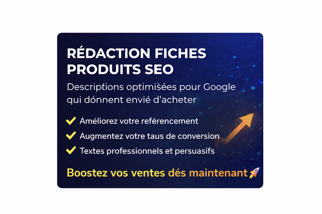 Rédacteur web & spécialiste SEO, j’aide les entreprises et e-commerçants à attirer plus de clients grâce à des textes stratégiques et persuasifs. Je rédige des contenus optimisés pour Google qui améliorent votre visibilité, renforcent votre crédibilité et augmentent votre taux de conversion. ✔ Rédaction de pages web professionnelles ✔ Fiches produits optimisées SEO ✔ Textes clairs, engageants et orientés vente ✔ Contenu adapté à votre cible et à votre marché Mon objectif : transformer vos visiteurs en clients grâce à des mots qui vendent.