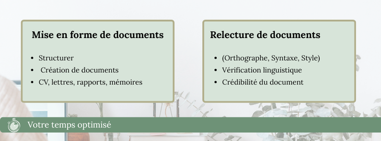 Bonjour ! Assistante administrative et écrivain public, je mets ma rigueur et ma passion pour la langue française au service de vos projets. Que vous soyez un particulier ou un professionnel, je vous accompagne pour : Relire et corriger vos textes (orthographe, grammaire, syntaxe). Mettre en forme vos documents (Word, PDF, PowerPoint) pour un rendu professionnel. Gérer la saisie et la mise en page de vos fichiers. Travailler avec moi, c’est l’assurance d’un travail soigné, d’une confidentialité totale et d’une écoute attentive pour m'adapter exactement à vos besoins. N’hésitez pas à me contacter pour toute question ou pour un devis personnalisé, je vous répondrai avec plaisir !