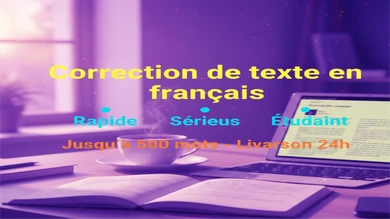 Proposé par missimi •correctrice de texte en Français et fabricatrice des logo par IA Vente au total 0
