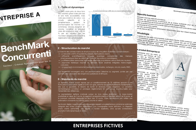 * **Phase de recherche et d'analyse** — Audit approfondi des sites, fiches produits, pricing, avis, branding et UX de chaque concurrent