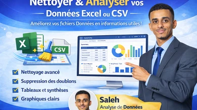 Étudiant en Master 1 Management des Systèmes d’Information à l’IAE Lyon. Spécialisé en analyse de données, Excel, Python et systèmes ERP. J’ai travaillé sur des projets d’analyse de données et traité des bases de plus de 20 millions de lignes. J’ai également de l’expérience en suivi de données, tableaux Excel et gestion de stocks. Sérieux, organisé et rapide, je propose des services simples et efficaces pour : Nettoyage et analyse de données Tableaux Excel et dashboards Conversion de fichiers (PDF, Word, Excel) Saisie et traitement de données Réponse rapide et travail soigné.