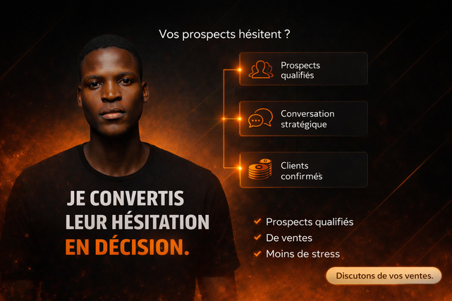 Je privilégie l’écoute, les bonnes questions et une communication naturelle pour créer un climat de confiance. L’objectif n’est pas de forcer la vente, mais d’aider la bonne personne à comprendre pourquoi votre offre peut réellement l’aider.