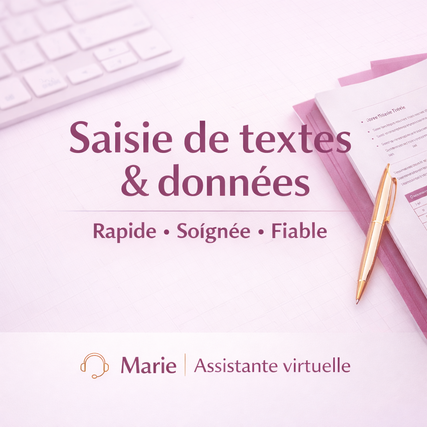 Je vous propose un service de saisie de textes et de données précis et rapide. Chaque document est soigné, structuré et livré dans les délais.