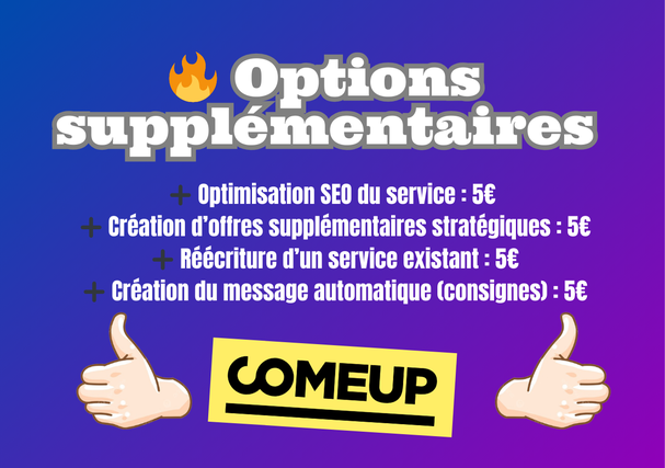 Je vais rédiger et optimiser votre service ComeUp pour maximiser vos ventes