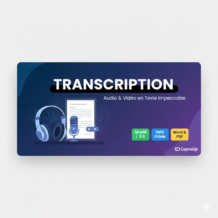 Je transforme vos enregistrements audio ou vidéo en documents texte clairs et parfaitement structurés. Que ce soit pour un podcast, une interview, une réunion ou une vidéo YouTube, je vous garantis un travail de haute qualité.