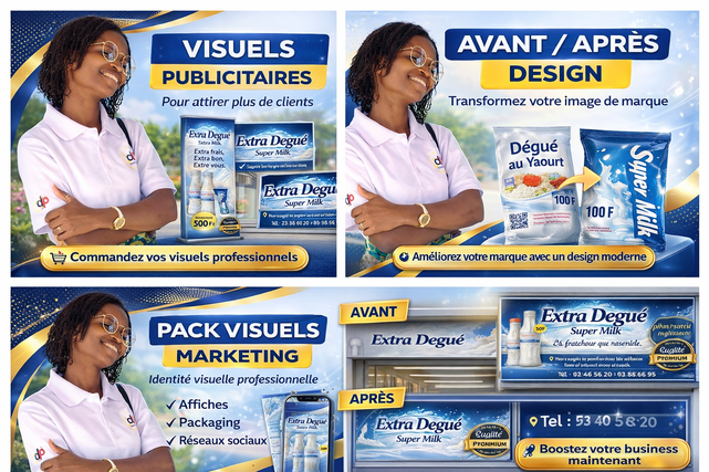 Je me nomme Joyce et je suis spécialisé en: Designer graphique & créatrice digitale | Logo, carte de visite, vidéo & boutique en ligne avec mes 3 ans d'expérience dans le design graphique . J’aide les entrepreneurs et petites entreprises à développer une image professionnelle grâce à des logos modernes, des vidéos dynamiques (Reels/TikTok) et des boutiques en ligne prêtes à vendre. Créative, sérieuse et à l’écoute, je propose des services personnalisés avec un excellent rapport qualité/prix. 🎁 Pour mes premiers clients, j’offre une petite variante gratuite afin de vous garantir un résultat parfait. Spécialement pour les logo, j'ai une question pour vous: Votre logo est-il à la hauteur de votre ambition ? Un logo n’est pas un simple dessin. C’est la première impression. C’est la crédibilité. C’est ce qui donne confiance avant même que vous parliez. Je conçois des identités visuelles pensées pour : ✔ Attirer des clients sérieux ✔ Inspirer confiance immédiatement ✔ Positionner votre marque comme professionnelle ✔ Vous démarquer de la concurrence Les grandes marques ne laissent pas leur image au hasard. Pourquoi la vôtre le ferait ?