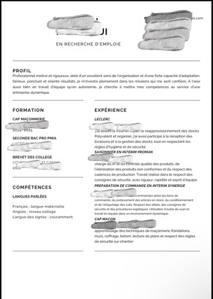 Vous cherchez un emploi, une alternance, un stage ou une formation mais votre CV ne vous met pas assez en valeur ? Je vous propose mon aide pour créer ou refaire entièrement votre CV afin qu’il soit moderne, clair et professionnel.