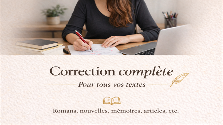 🌞 Besoin d’un texte impeccable, fluide et sans fautes ? Je suis là pour vous aider. 💌 Passionnée par les mots, l’écriture et la lecture, je travaille avec soin et dans la bonne humeur. 🖋️ Quel que soit le type de votre texte, je mets tout mon sérieux au service de votre projet. Chaque texte que je corrige est traité comme s’il était le mien, avec un seul objectif : votre entière satisfaction. 🔹 Je reste bien sûr disponible si vous avez des questions ou des besoins particuliers. À très vite pour rendre vos écrits encore plus beaux ✨