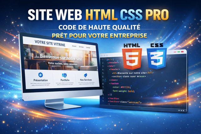 Je développe votre site vitrine en HTML et CSS et je vous livre un code clair, structuré et prêt à être hébergé.