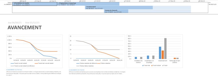 Un planning prêt à être utilisé pour la gestion et le suivi du chantier