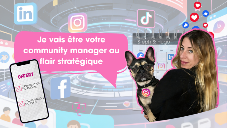 Moi c'est Steph : une passionnée de communication et de création, avec plus de 7 ans d’expérience en marketing digital, en gestion de réseaux sociaux, en graphisme et en montage vidéo.