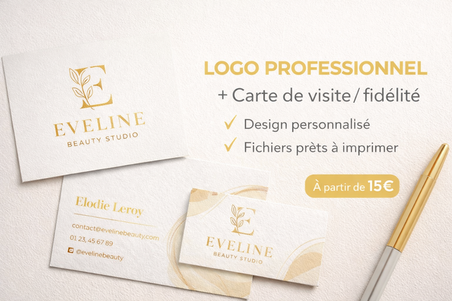Je vous propose la création d’un logo professionnel personnalisé ainsi que la conception de votre carte de visite ou carte de fidélité, afin de vous aider à développer une image professionnelle et cohérente.