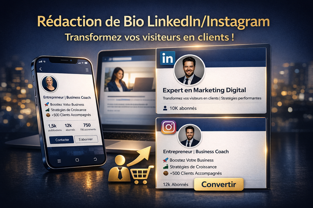 Je vais rédiger vos bio LinkedIn Instagram professionnelle qui attire et convertit vos visiteurs en clients