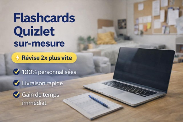 Je transforme vos cours en flashcards interactives prêtes à utiliser sur Quizlet pour vous permettre de :
