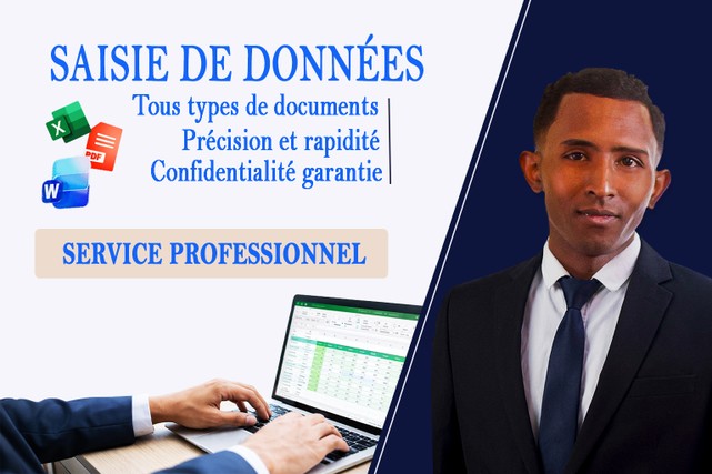 Je suis opérateur de saisie de données professionnel, spécialisé dans la saisie, la retranscription et le traitement de documents, y compris les documents manuscrits. Je vous aide à transformer vos fichiers bruts en documents numériques clairs, propres et exploitables, un service fiable, rapide et 100% confidentiel pour tous vos besoins.