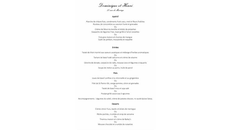Proposition d'un menu varié et équilibré. Possibilité d'adaptation végétarienne - restriction alimentaire