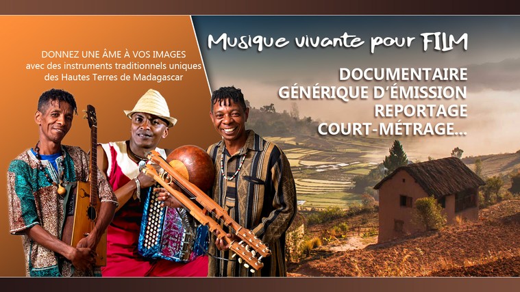 Je crée pour votre film, documentaire ou générique une musique vivante, enregistrée en live avec des instruments traditionnels rares des Hautes Terres de Madagascar comme le Kabosy, le Jejo Voatavo, l’Angorodao...