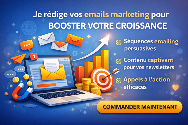 Je vais rédiger et concevoir vos emails marketing, newsletters et séquences e-mail à fort taux de conversion