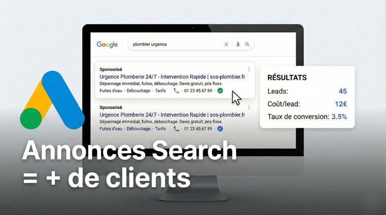 Je mets en place et j’optimise vos campagnes Google Ads pour vous aider à générer plus de contacts, appels et ventes, avec une approche claire, simple et adaptée à votre budget.
