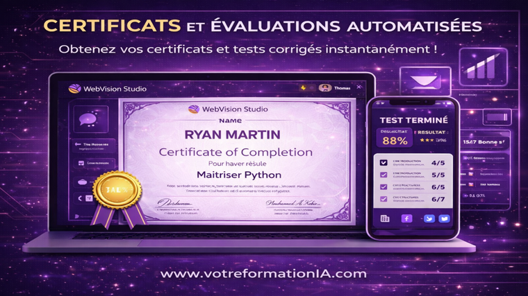 ***Automatisation*** : *L’IA se charge des tâches répétitives (évaluations, certificats, etc.) pour vous permettre de vous concentrer sur l'enseignement .*