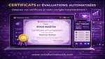 Offrez des **certificats** instantanés à vos étudiants une fois qu'ils ont terminé une formation ou un module.