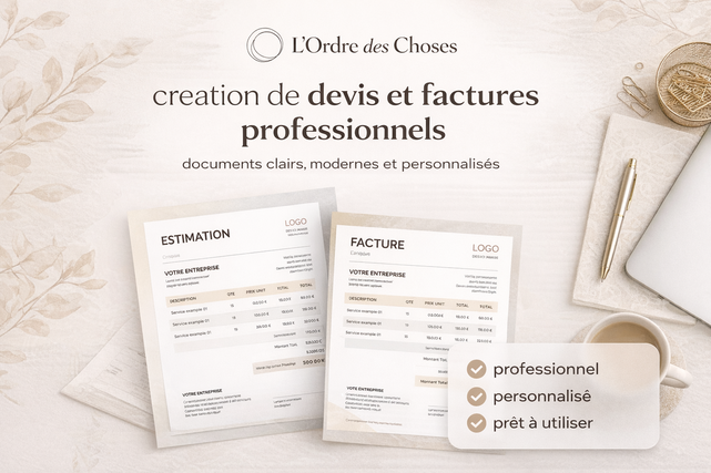 Je vous propose de créer pour vous des devis et factures professionnels personnalisés, adaptés à votre activité et à votre image.