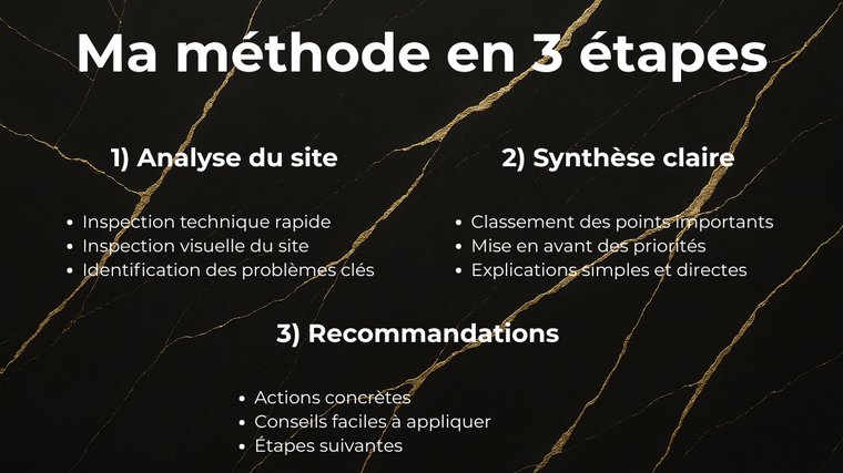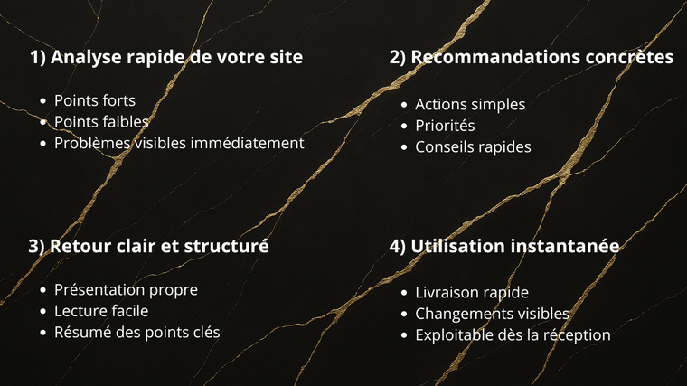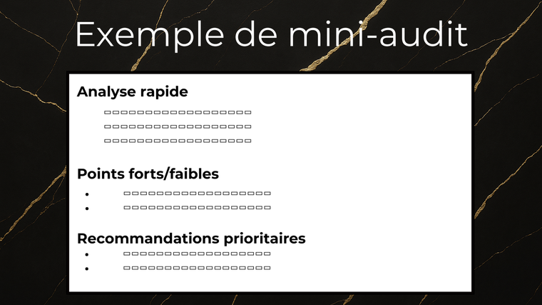 Je vais analyser votre site web et vous fournir un mini audit clair et actionnable