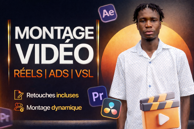 🚀 Boostez votre visibilité avec des vidéos TikTok & Reels dynamiques ! Vous savez que les premières secondes d'une vidéo déterminent son succès. En tant que monteur spécialisé dans le format court, je transforme vos rushes en contenus hautement addictifs pour maximiser votre rétention d'audience. 🎯 Pourquoi me confier vos montages ? Le format 9:16 demande du rythme. J'utilise des techniques de montage modernes pour garder l'attention de vos abonnés du début à la fin. 📦 Ce que comprend l'offre de base (15 €) : Montage d'une vidéo brute de 60 secondes maximum. Découpe des silences et des hésitations. Ajout de transitions fluides. Export en format HD (9:16). 💎 Mes options pour un rendu professionnel : Pack Sous-titres Stylisés : Ajout de sous-titres dynamiques et colorés (style Alex Hormozi). Pack Sound Design : Ajout de musiques libres de droits et d'effets sonores (SFX). Pack Éléments Visuels : Ajout d'emojis, d'images d'illustration et de zooms stratégiques. 🛠 Comment commander ? Sélectionnez les options qui vous conviennent ci-dessous. Envoyez-moi vos fichiers via la plateforme. Je m'occupe du reste et vous livre rapidement !