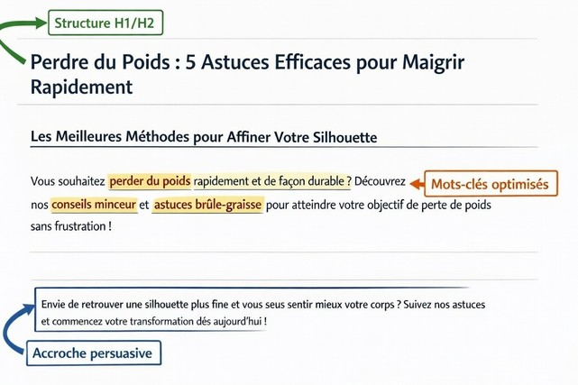 -Structure professionnelle : Chaque texte est livré avec un balisage HTML (H1, H2, H3) prêt à l'emploi.