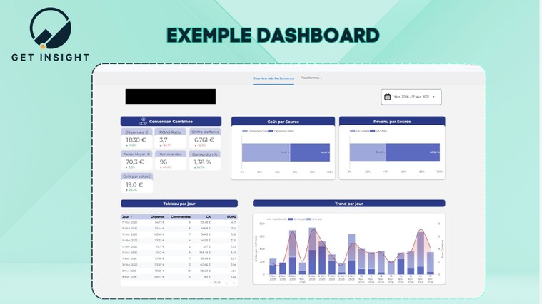 Votre ROAS, votre CAC, votre taux de conversion, vos meilleures sources de trafic — tout est là, en temps réel, en un coup d'œil. Vous prenez des décisions basées sur des faits, pas sur des impressions.
