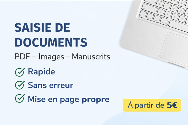 Je vous propose un service de saisie professionnel et soigné de vos documents PDF, images ou manuscrits vers Word.