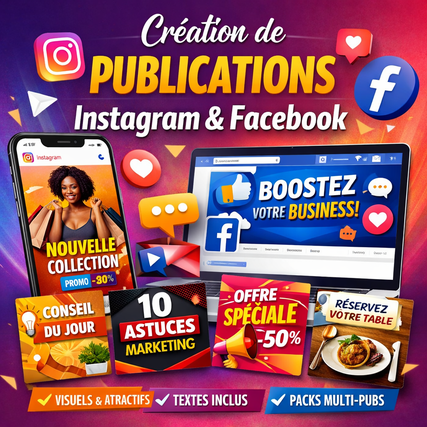 Je vous propose la création de visuels professionnels, modernes et percutants pour vos pages Instagram et Facebook, adaptés à votre activité et à votre cible.