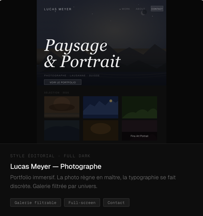 👤 Je crée des sites web qui travaillent pour vous : modernes, rapides, pensés pour convertir. Basé entre Lausanne et la Savoie, j'interviens pour des indépendants, coaches, PME et startups qui veulent une présence en ligne qui leur ressemble vraiment.Mon approche : pas de template préfabriqué, pas de WordPress générique. Chaque projet est conçu sur mesure, livré dans les délais, avec un vrai souci du détail graphique et de l'expérience utilisateur. Ce que je fais : Sites vitrines & landing pages (HTML/CSS/JS, Symfony, Angular) Sites CV & personal branding pour indépendants et reconvertis Intégrations sur mesure et retouches de sites existants Petites applications web et dashboards Ce qui me différencie : Livraison rapide (48h à 7 jours selon le projet) Communication claire à chaque étape Double culture franco-suisse : je comprends les deux marchés Tarifs transparents, sans mauvaise surprise. 🛠️ Compétences Langages & technos HTML5 · CSS3 · JavaScript · PHP · Symfony · Angular · MySQL · Bootstrap · Git Design & outils Figma · VS Code · Cursor · GitHub · Canva · Notion Méthodes Responsive design · SEO on-page · UX/UI · Intégration Figma → code Vous avez un projet ? Discutons-en — premier échange offert, sans engagement.