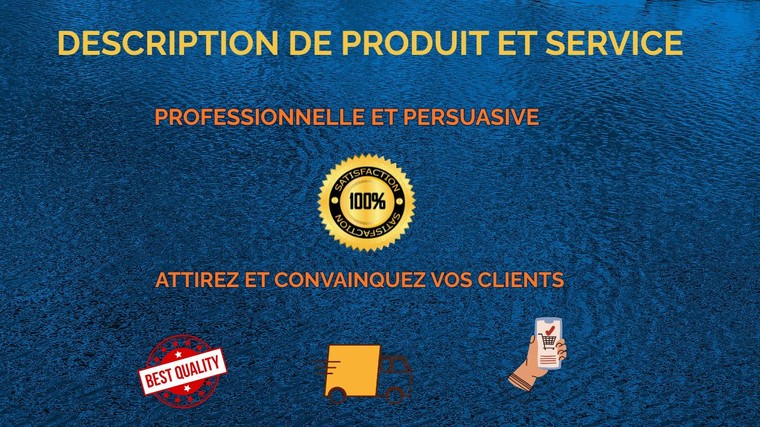 Rédaction claire et persuasive pour vos produits et services Vous avez besoin de présenter un produit ou un service de manière professionnelle et convaincante ? Je vous aide à transformer vos informations en descriptions simples, naturelles et orientées client, avec l’aide de l’intelligence artificielle et une relecture attentive. ✔️ Textes clairs et structurés ✔️ Adaptés à votre cible ✔️ Ton professionnel ou accessible selon votre besoin ✔️ Livraison rapide ✔️ Communication fluide Mon objectif : vous faire gagner du temps tout en valorisant votre offre. Réponse rapide assurée.