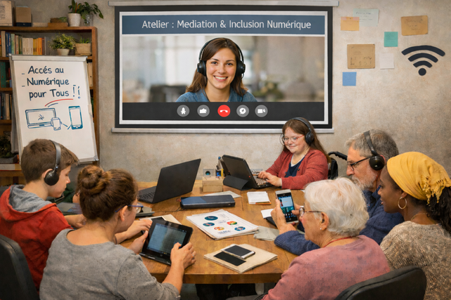 Un atelier peut être destiné à une personne ou à un groupe apprenant (jusqu'à 3 personnes connectées sur une session en visioconférence) sur un temps maximum de 60 minutes par session. Les ateliers sont destinés à un public en fracture numérique ou illectronisme, particulier ou salarié en besoin.