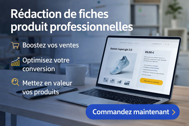 Spécialisé en copywriting et rédaction optimisée SEO, je rédige pour vous des fiches produit claires, convaincantes et stratégiques qui transforment vos visiteurs en acheteurs.