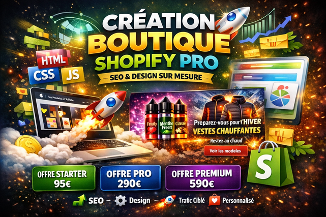 🚀 Expert Shopify | Création & refonte de boutiques e-commerce performantes Vous souhaitez une boutique Shopify moderne, rapide et optimisée pour convertir ? Je vous accompagne dans la création complète ou la refonte professionnelle de votre boutique, avec une approche stratégique axée sur le design, la performance et l’expérience utilisateur. 🎯 MON OBJECTIF : Concevoir une boutique claire, moderne et prête à générer des résultats dès sa mise en ligne. ✨ MES SERVICES SHOPIFY : 🛒 Création complète de boutique clé en main 🔄 Refonte complète de boutiques Shopify existantes 🎨 Design UX/UI moderne et personnalisé 💻 Intégration & personnalisation HTML, CSS et JavaScript 🔎 Optimisation SEO et structure e-commerce efficace 🖼️ Création d’images hero, visuels et diaporamas d’accueil 📱 Optimisation mobile & amélioration des performances 🎓 Formation pour gérer votre boutique en toute autonomie 💼 Une approche complète : technique, graphique et stratégique pour construire une boutique cohérente, professionnelle et orientée conversion. ⭐ POURQUOI TRAVAILLER AVEC MOI ? ✔️ Design moderne et impactant ✔️ Refonte propre sans perdre l’identité existante ✔️ Communication simple et efficace ✔️ Vision e-commerce centrée résultats 🔥 Que vous lanciez votre première boutique ou que vous souhaitiez moderniser un site déjà en ligne, je vous aide à créer une présence Shopify solide et professionnelle.