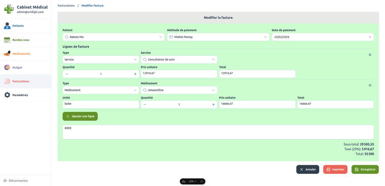 Je vais crée votre app (logiciel) de gestion de cabinet médical sur mesure (patients, RDV, facturation)
