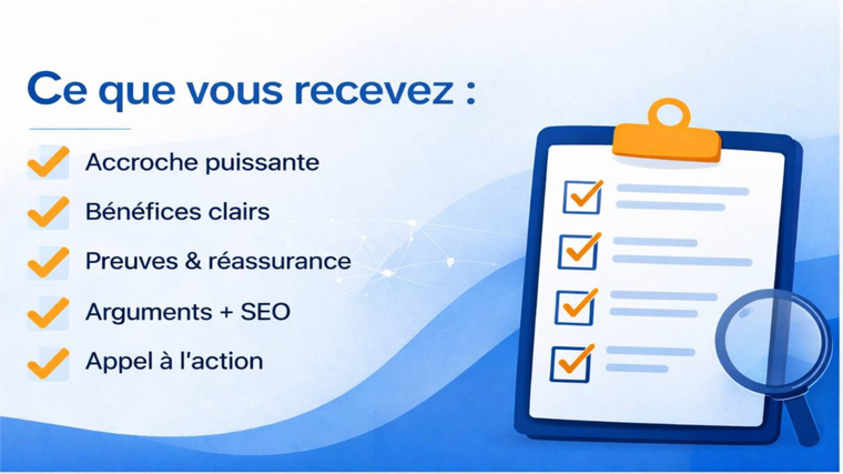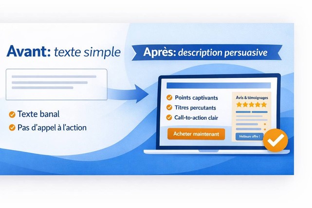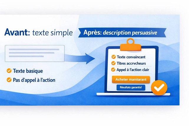 Je rédige une description orientée conversion pour vos produits physiques ou digitaux.