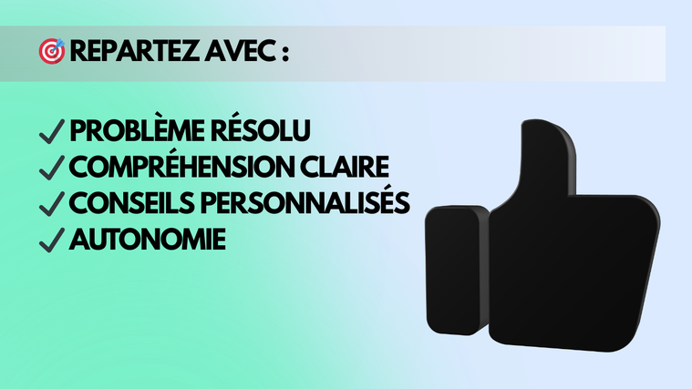 ~Objectif : **résoudre le problème immédiatement** et vous rendre autonome.~