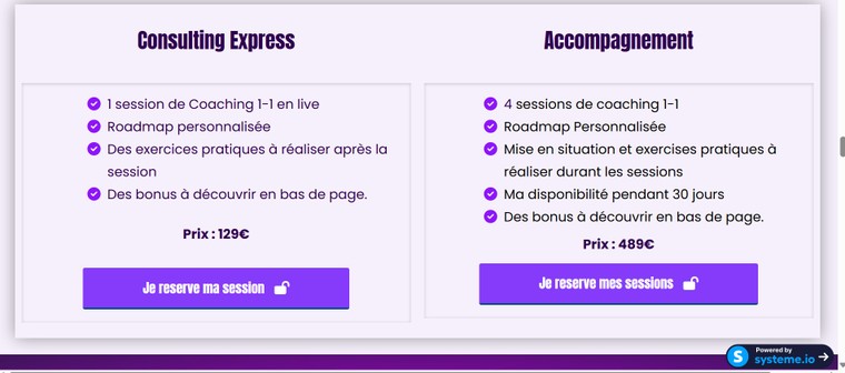 J'ai déjà livré des tunnels actifs en production pour des coachs et formateurs francophones. Je peux vous montrer un exemple concret sur demande.