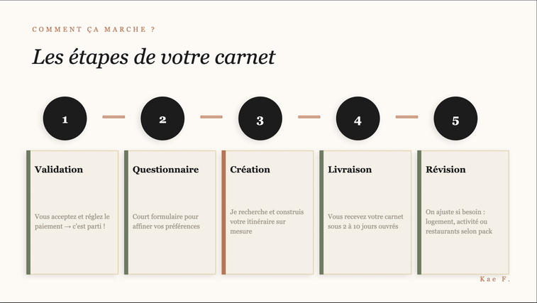 En tant que Travel Planner indépendante, je résous ce problème pour vous. Je transforme vos envies en un itinéraire sur mesure et optimisé, pour que votre seule mission soit de préparer votre valise.