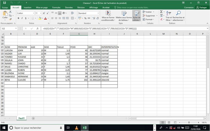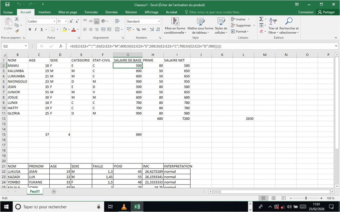✓ Calculs automatiques (moyennes, pourcentages, totaux…)