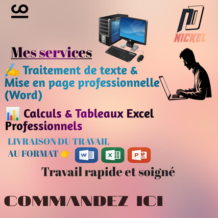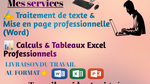 Je vous propose un service complet en traitement de texte et Excel, idéal pour étudiants, entrepreneurs, entreprises et particuliers.
