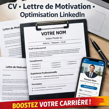 Je vous propose un service professionnel de création, d’amélioration et d’optimisation de CV conçu pour mettre en valeur vos compétences, votre parcours et vos expériences de manière stratégique et moderne.