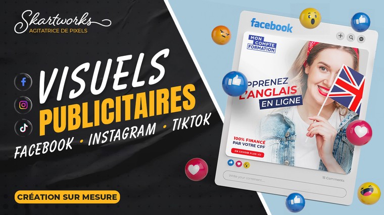 Je vais créer vos visuels publicitaires statiques ou animés Facebook Instagram TikTok LinkedIn