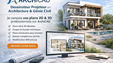 🏗️ Expert en Plans 2D/3D sur ArchiCAD | Projets Modernes & Professionnels 📐 Spécialiste ArchiCAD | Conception Architecturale & Modélisation BIM 🏢 Je Réalise Vos Plans Architecturaux Détaillés sur ArchiCAD 🔥 Dessinateur Pro ArchiCAD | Plans, Coupes & Façades de Qualité 💎 Conception & Modélisation ArchiCAD | Rendu Clair & Précis 🚀 Plans Architecturaux sur ArchiCAD – Rapide, Conforme & Fiable 🎯 Expert ArchiCAD | Villas, Immeubles & Bâtiments Professionnels